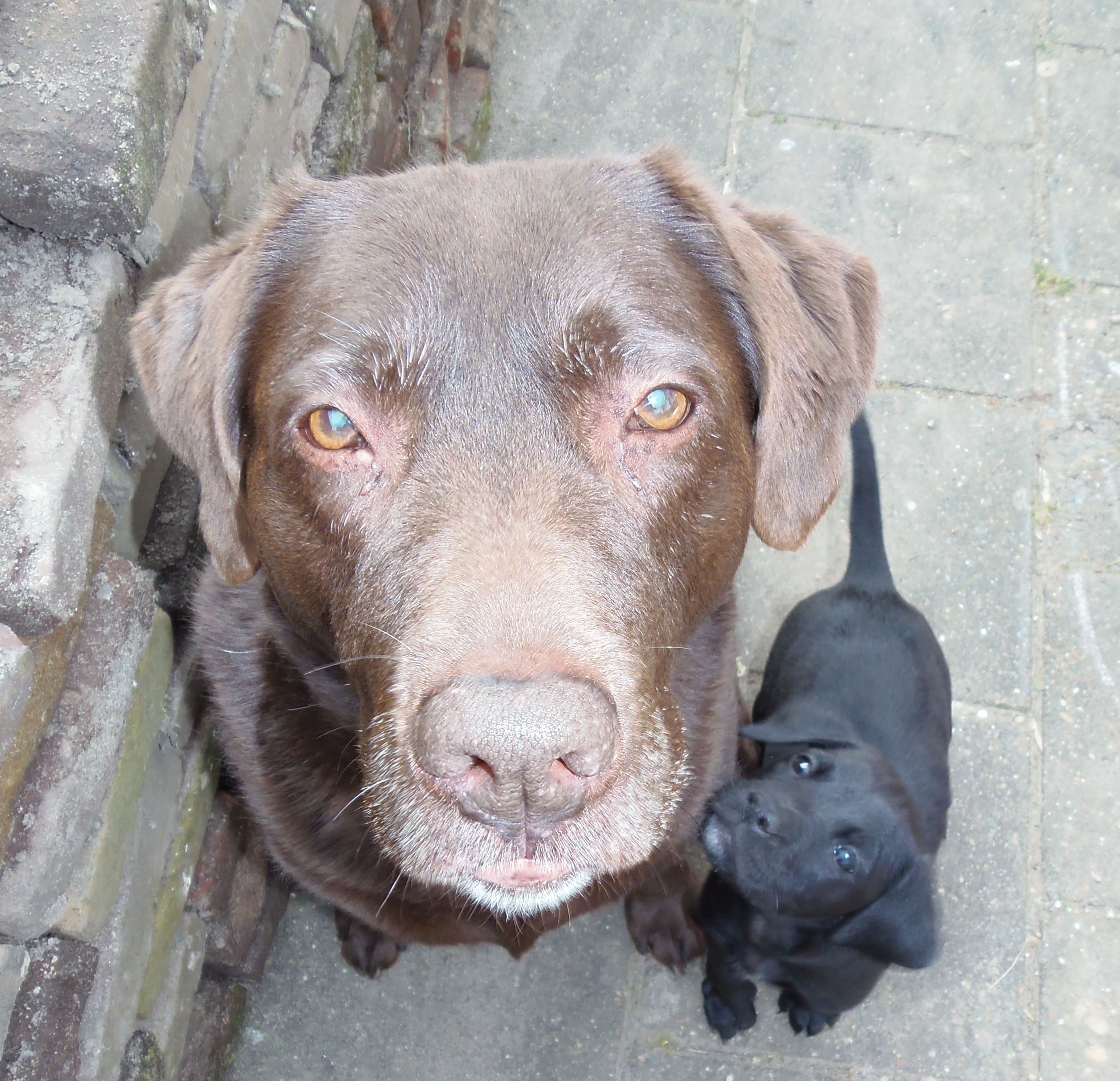 Hier ziet u haar samen met Choco, die inmiddels 12 is maar 1 toen ze hier kwam wonen en destijds de grote vriend van Mack (de echte). Choco is de meest veilige hond ter wereld voor kinderen, baby’s, inbrekers, katten en inbrekers. Hooguit een wortel doet ze kwaad maar verder nog geen vlieg. En vanwege zijn overdosis karakter moet ik ook nog even een foto van Mack en Mack(de echte) plaatsen.