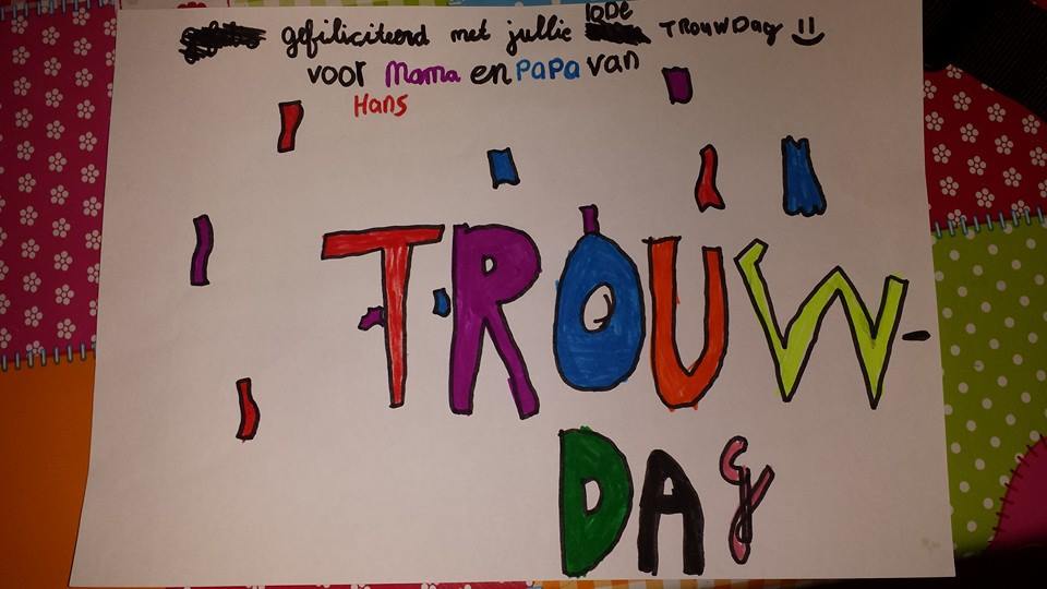 Ik heb veel tekeningen van m’n kinderen bewaard en dat gefeliciteerd is inderdaad een groot struikelblok blijkt steeds weer.