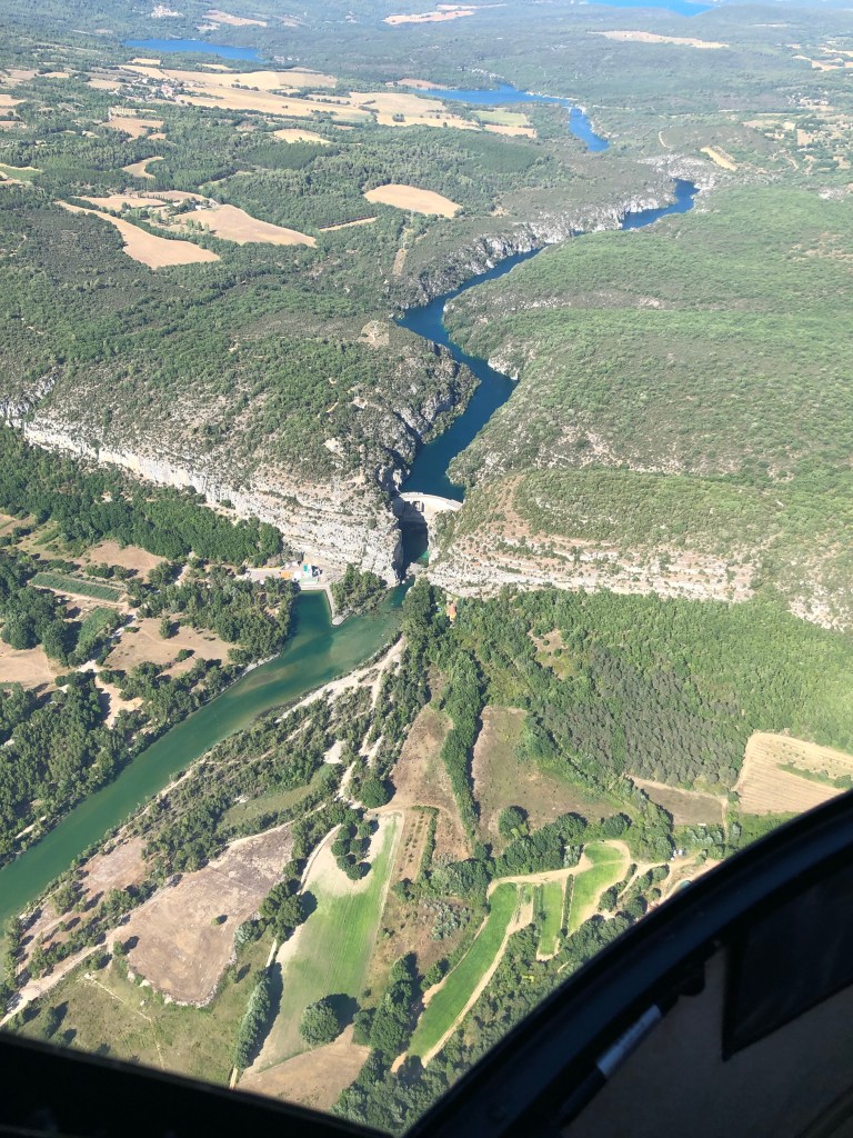Hans en ik maakten een rondvlucht met een helikopter boven de Verdon. Ik had nooit in een helikopter gezeten en Hans had überhaupt nog nooit gevlogen. Met al dat glas om je heen heb je een mooi uitzicht, maar ik moest wel even slikken bij het opstijgen. Best hoog, en er stond een briesje dat af en toe vat kreeg op de helikopter. Op zo’n moment vertrouw ik maar op de piloot en z’n kunsten.