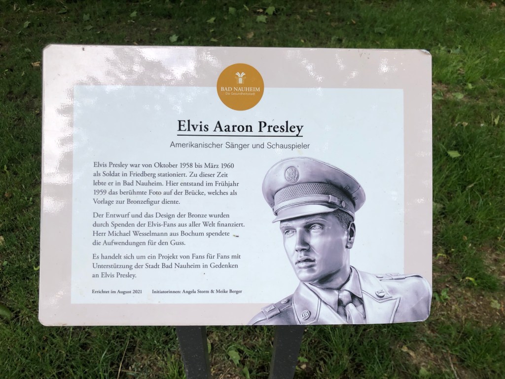 Na een koortsige nacht, reden we de volgende dag ochtend naar Bad Nauheim, de stad waar Elvis was gelegerd in zijn diensttijd. Nadat ik gestopt was om over te geven, konden we weer verder over de schandalig slechte wegen in Duitsland -ik kan geen bord met Strassenschaden meer zien- en kwamen we na een poosje aan in deze Elvisstad. We zagen een politiebusje en mijn schoonvader vroeg aan de agenten wo die Goethestraße war. Echt, alsof ze water zagen branden. Elvishome, probeerde hij, en toen begon hen iets te dagen. Ze stuurden ons finaal de verkeerde kant uit. Of het nu was omdat ze in hun pauze gestoord werden, dat ze niet van Elvis hielden, of omdat wij Nederlanders hen ook altijd de verkeerde kant op stuurden, wij liepen in de verkeerde richting. Na 150 meter hadden we hun poets door, en keerden om. Toen we langs het busje liepen zijn we er aan beide kanten hard tegenaan gaan duwen. Helaas gelijktijdig, dan merken de inzittenden er niks van.